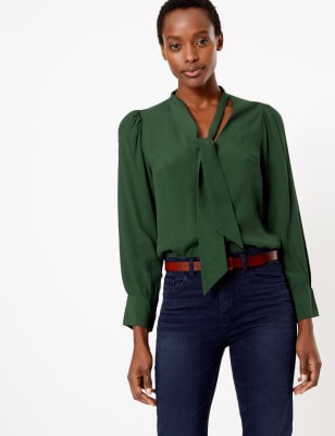 Real Silk Bow Tie Neck Blouse Women Autumn Long Sleeve Casual Tops And Blouses Elegant Formal Ladies Workwear Shirts Plus Size Blouses Shirts Aliexpress